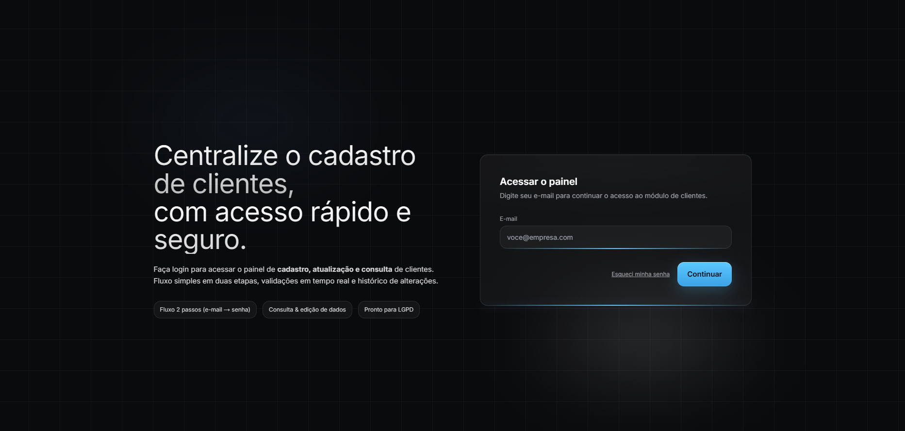 Cadastro, perfis e permissões com trilha de auditoria, MFA e SSO (OAuth2/OIDC). Onboarding 3× mais rápido e governança LGPD.